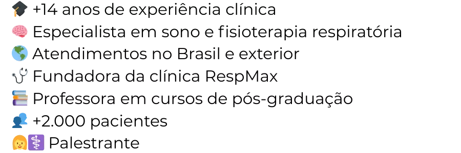 Fisioterapeuta respiratória, mestre, doutoranda e apaixonada por ajudar as pessoas a dormirem melhor de verdade.